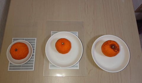 これを縮小コピーしたものの上に、ミカンを置いてみることにします。